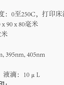 光固化:UV(365 nm)和蓝光(405 nm)光固化