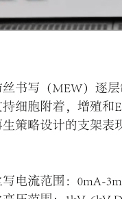熔体电纺丝写电流范围:0mA-3mA DC