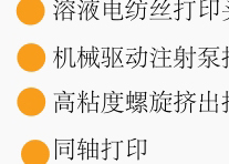 打印头和打印技术类型:溶体电纺丝写、微阀细胞友好型ink-jet、高精度螺旋挤出打印、等。