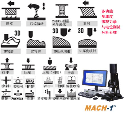 加拿大 公司创建于1999年,专注制造并商业化用于多功能材料和组织的机械特性quan方位表征的测试设备。 Mach-1多功能材料微观机械特性quan方位测定试仪是wei依款集压痕、压缩(侧限与无限压缩、压缩同时电位特性测试)、牵张、三点弯曲、四点弯曲、表面轮廓mapping、3D厚度mapping、剪切、摩擦、扭转、穿刺、剥离等各种机械特性测试于一体的设备。