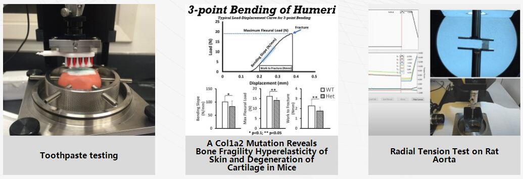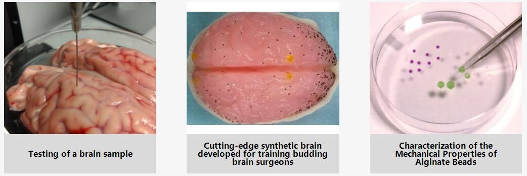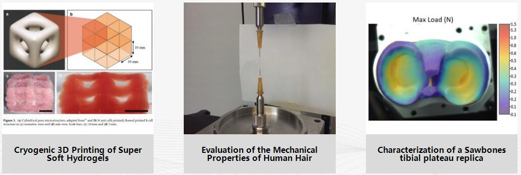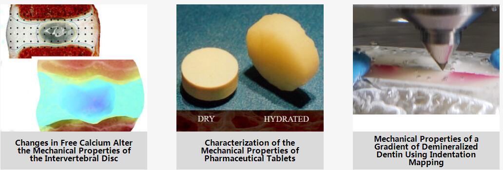 4、可测试软、硬、粗、细各种材料、生物组织、细胞构建体等:包括但不仅限于关节软骨、皮肤(伤口愈合)、水凝胶、关节软骨(骨关节炎)、皮肤、关节软骨(修复)、骨、半月板、血管(静脉和动脉)、关节软骨(结构)、隐形眼镜、橡胶和弹性体、椎间盘(椎间)、牙齿(tooth的复数)、骨(脊椎)、关节软骨(TMJ)、牙齿(刷牙)、注射器、脑、包装材料、骨骼(修复)、3D打印材料、牙齿(补牙)、软组织(模型)、水凝胶(珠)、皮肤(人造)、生物涂层、塑料和聚合物(杆)、椎间盘(髓核)、塑料和聚合物(板材) 、软组织(足底)、粘合剂、肺、外科缝合材料、韧带和肌腱、支架、药片、头发、纤维丝、皮革、骨(生长板)、韧带和肌腱(修复)、耳廓软骨、椎间盘(纤维环)、透镜(眼睛)、纸、骨头(填充材料)、心脏(组织工程) 针、韧带和肌腱(人工)、纺织品、金属箔、动物壳、蛛丝、假肢(膝盖)、假体(髋关节)、食物、玻璃和陶瓷、软组织(手)及其他定制材料