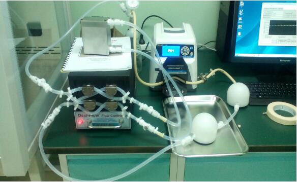 The Osci-Flow® is a software-controlled valve-operated device designed to provide oscillatory or start-stop flow patterns to cells cultured in the Streamer®, FlexFlow or other perfusion devices. The Osci-Flow® device is able to regulate flow both in an oscillatory (flow reversal) manner and in a pulsatile (square wave) mode, where the flow is stopped and then restarted after a designated period of time. The StreamSoft software allows the user to regulate frequency of oscillation or pulsatile patterns, as well as shear stress levels applied to cells.