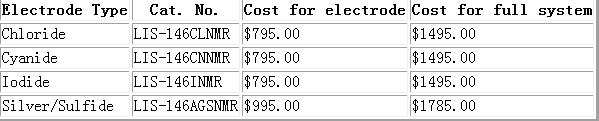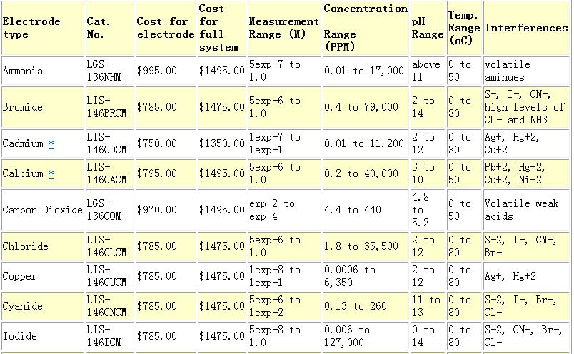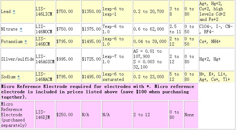 下列带"*"的单电ji都附带一个微型参比电ji,购买电ji价格中已经包含了参比电ji的价格(购买这样的电ji为你节省$100)。锁有的电ji都是组合电ji,电ji里面都安装了参比电ji。