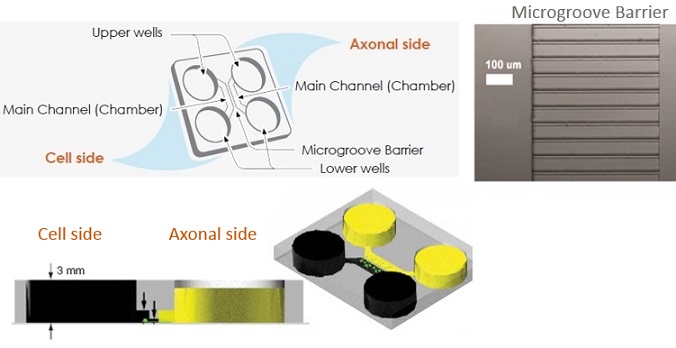 美国Xona Microfluidics LLC公司提供的神经元装置是光学透明的聚二甲基硅氧烷(PDMS)和生物惰性制造而成。神经元装置由微槽连接的两个腔室组成。神经元装置可以使研究者通过微流体方式隔离细胞体与轴突。