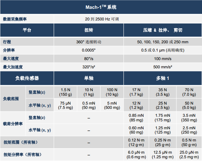 该系统模块化集成压缩、张力、剪切、摩擦、弯曲(三点弯曲和四点弯曲均可)、挠曲、穿刺、扭转和2D/3D压痕、3D轮廓及多力混合耦连测试的一体化微观力学测试装置。能对生物组织、聚合物、凝胶、生物材料、胶囊、粘合剂和食品进行精密可靠的机械刺激和表征。允许表征的机械性能包括刚度、强度、模量、粘弹性、塑性、硬度、附着力、肿胀和松弛位移控制运动。