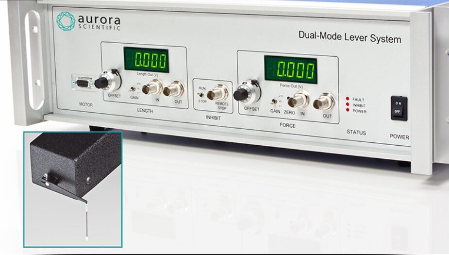 Aurora Scientific knew that a 300C Dual-Mode muscle lever would be able to provide the mechanical stimulation required while also allowing Dr. Woodbury to record both indentation distance and force. However, the location of the 300C motor meant that our normal lever arm could not be used to apply the desired forces. Therefore, an indenter arm was developed which had a vertical shaft attached to it to allow for versatile placement. Reduction of arm inertia became important due to issues which arose while tuning the 300C and after several attempts, an arm design and appropriate tuning settings were determined.