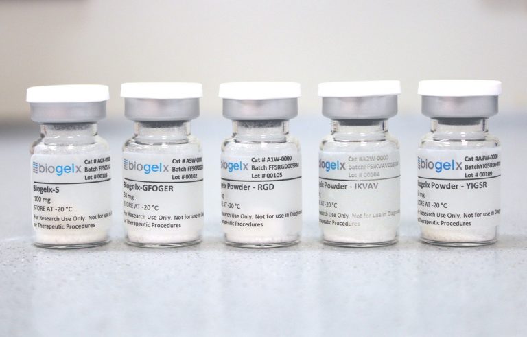 Biogelx? Screening Kit contains all five different gel formulation samples: BiogelxTM-S, -RGD, -IKVAV, -YIGSR, and -GFOGER at a discounted price.