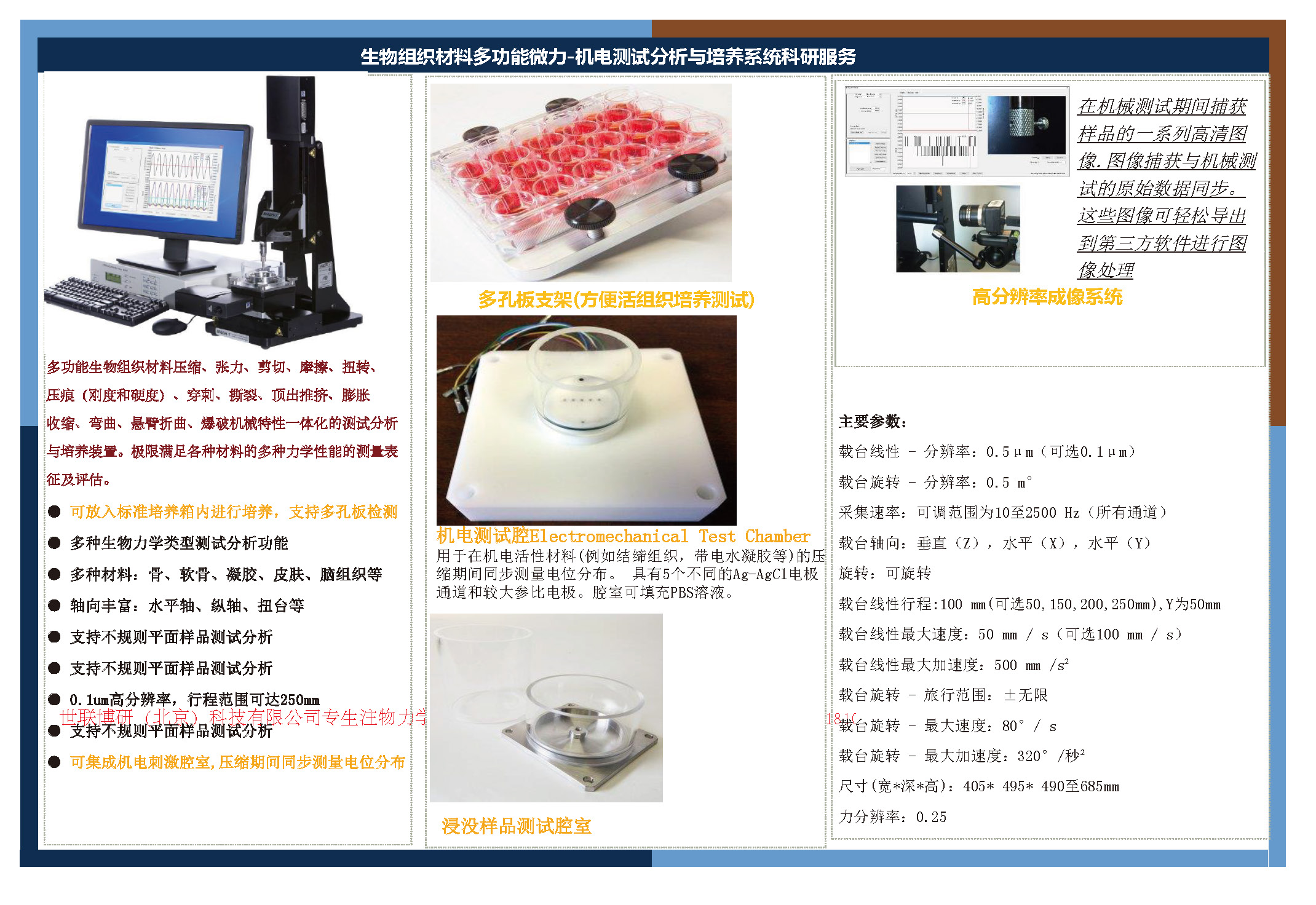 激和表征。允许表征的机械性能包括刚度、强度、模量、粘弹性、塑性、硬度、附着力、肿胀和松弛 位移控制运动。