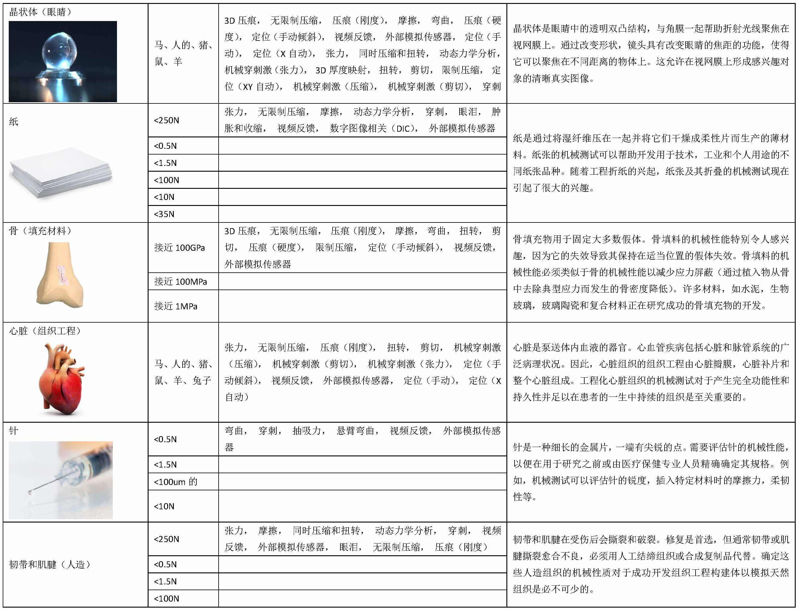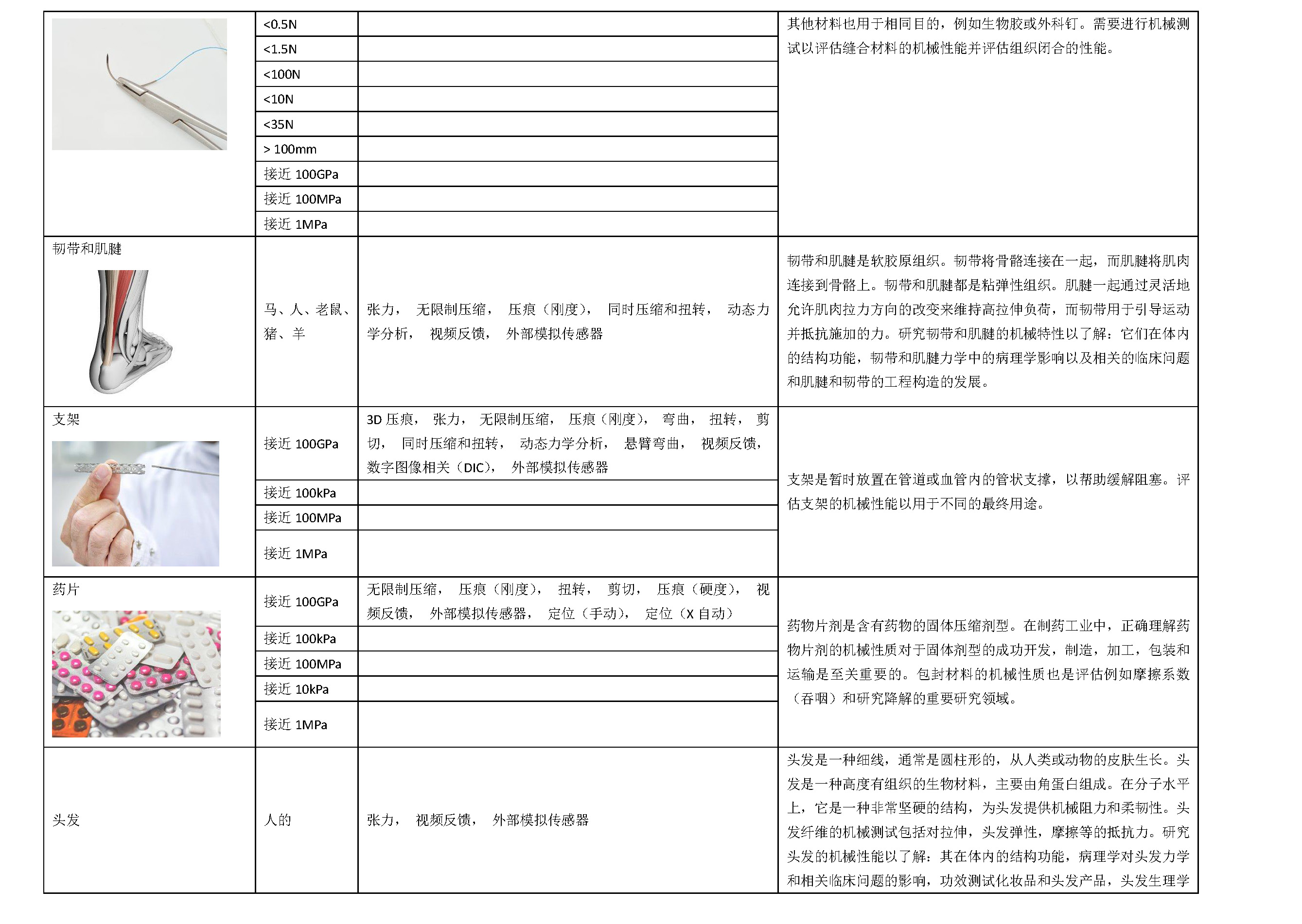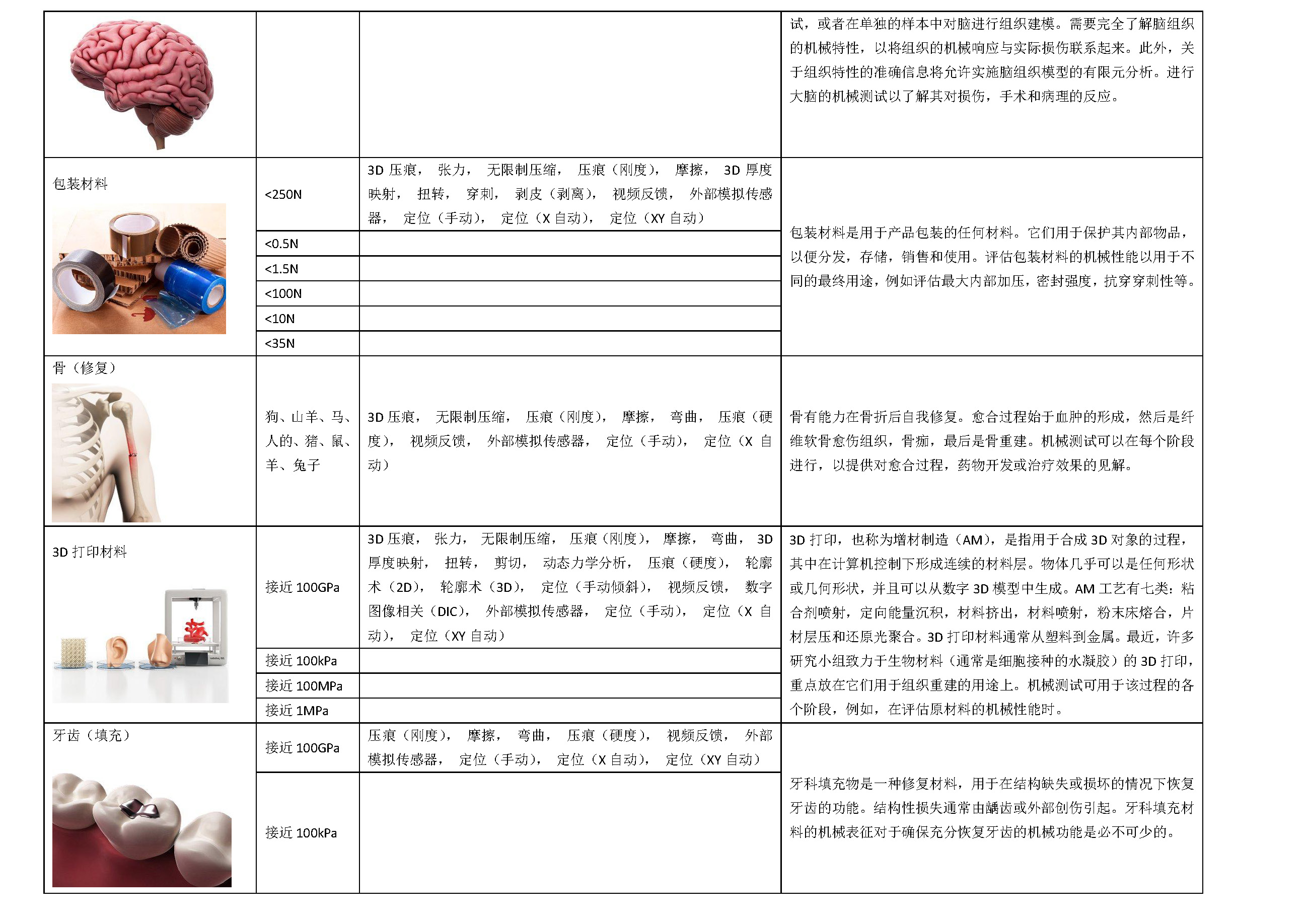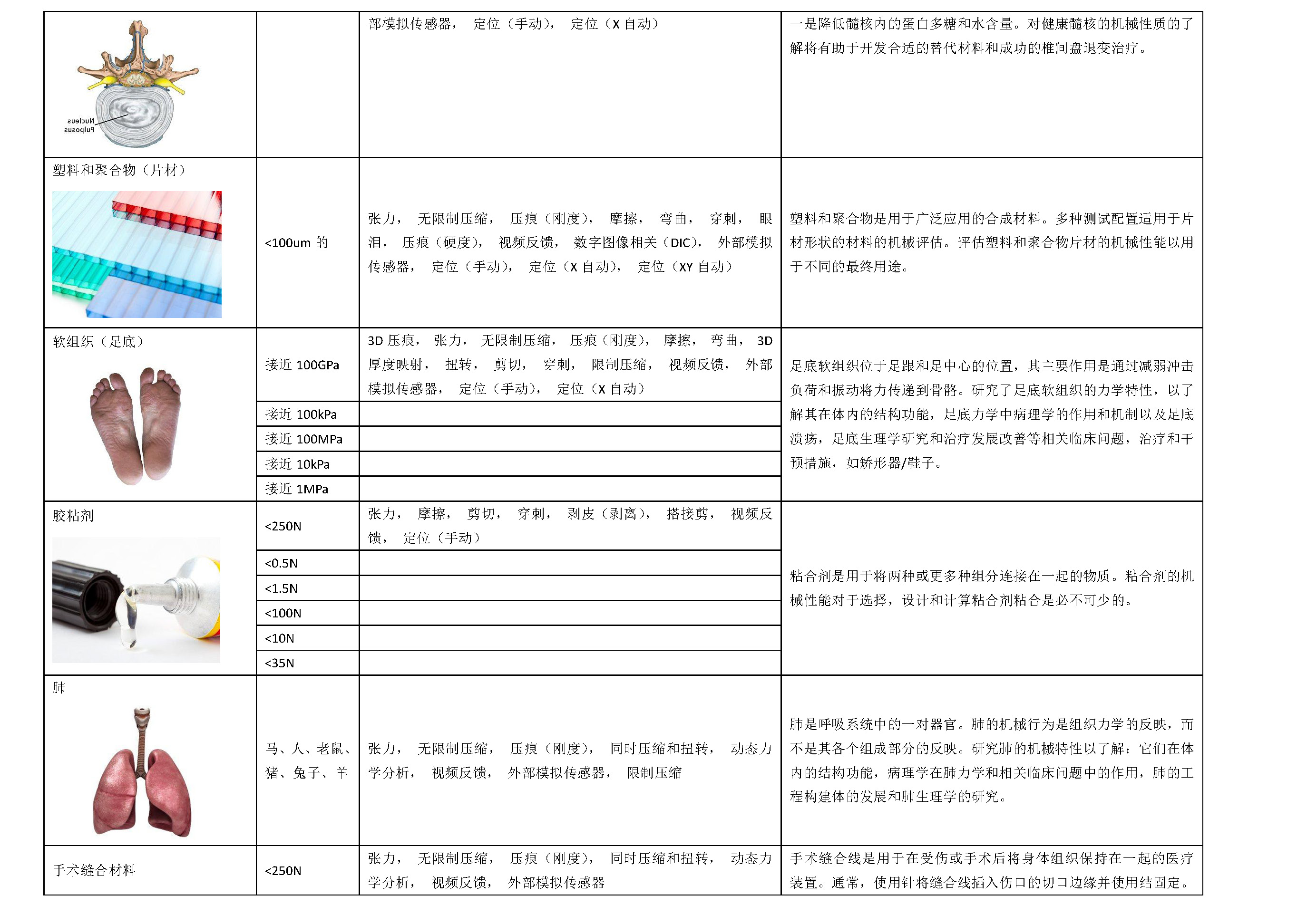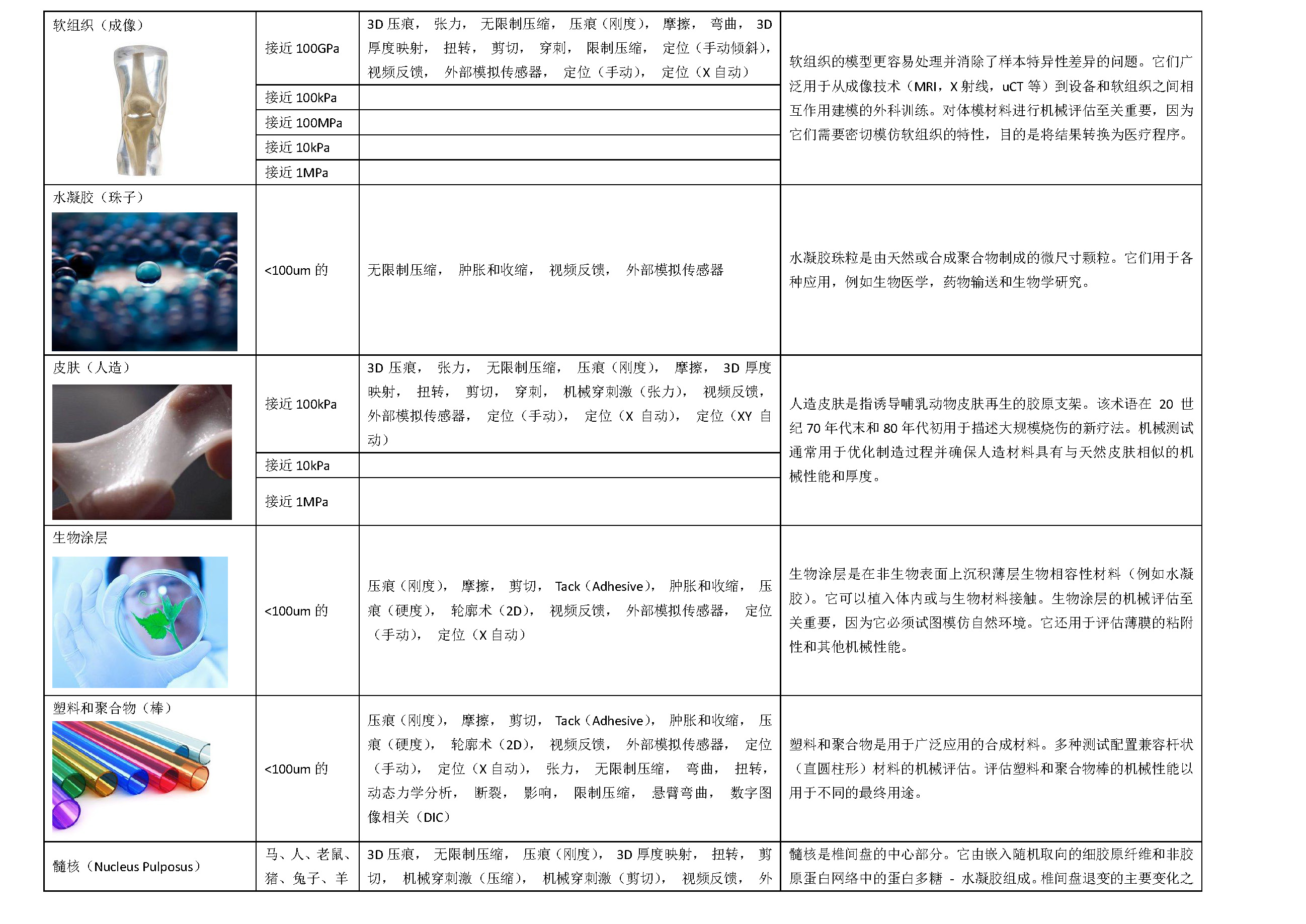 材料力学性能可以应用到生产的任何阶段,从测试原材料质量直到检查制成品的耐用性。 测试可对广泛多样的生物样品、材料和产品进行,包括软组织、软骨组织、皮肤组织、凝胶组织、高分子材料、生物产品、医学鉴定和水凝胶等。力学性能测试可帮助企业向客户证明其产品的力学性能、稳定性和安性,从而获得基础数据和竞争势。