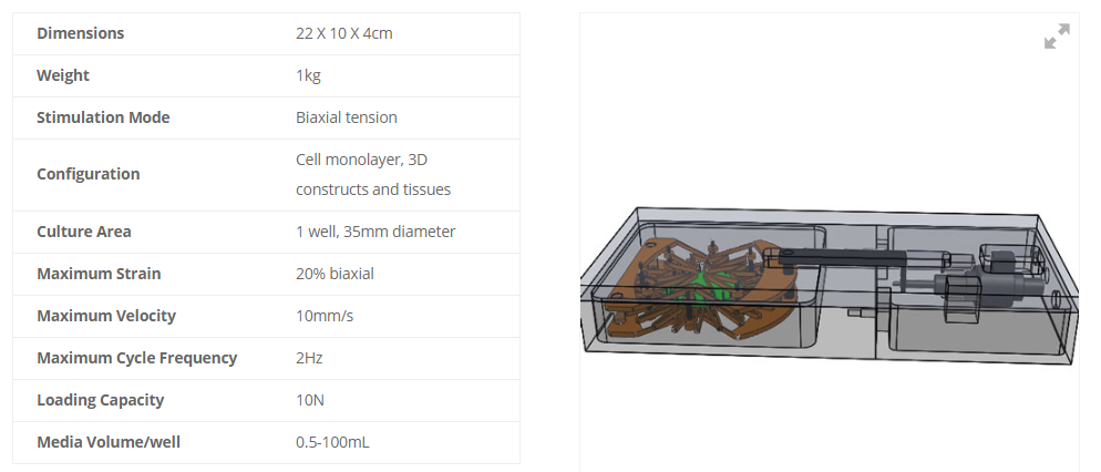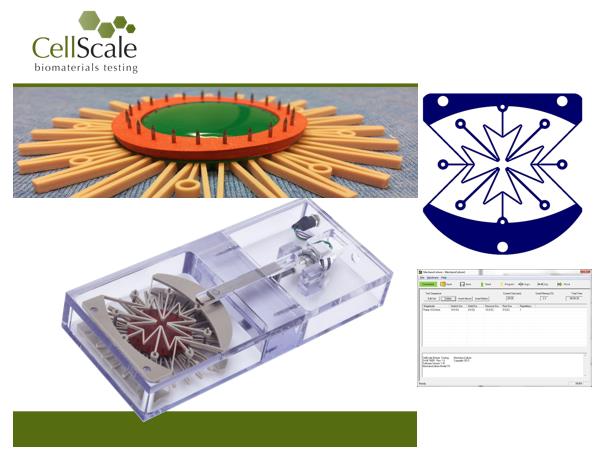 MCB1使用复杂的可变形界面在24针安装环上生成径向运动模式。用户提供的直径35mm的膜,支架和组织可以穿刺安装到该环上,并根据指定的协议进行双轴拉伸。整个组件可以消毒,适合在实验室培养箱中进行长期细胞培养。