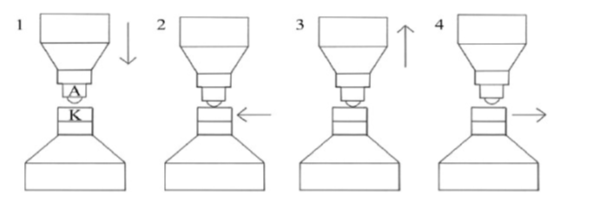 1.施加负载  拮抗剂(A)接触样品(K)表面