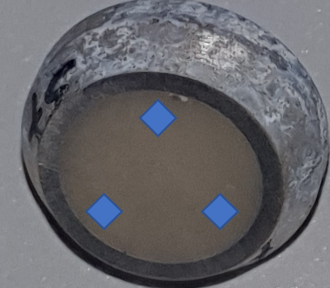●用维氏硬度HV 0,5在样品表面的三个点上测量硬度