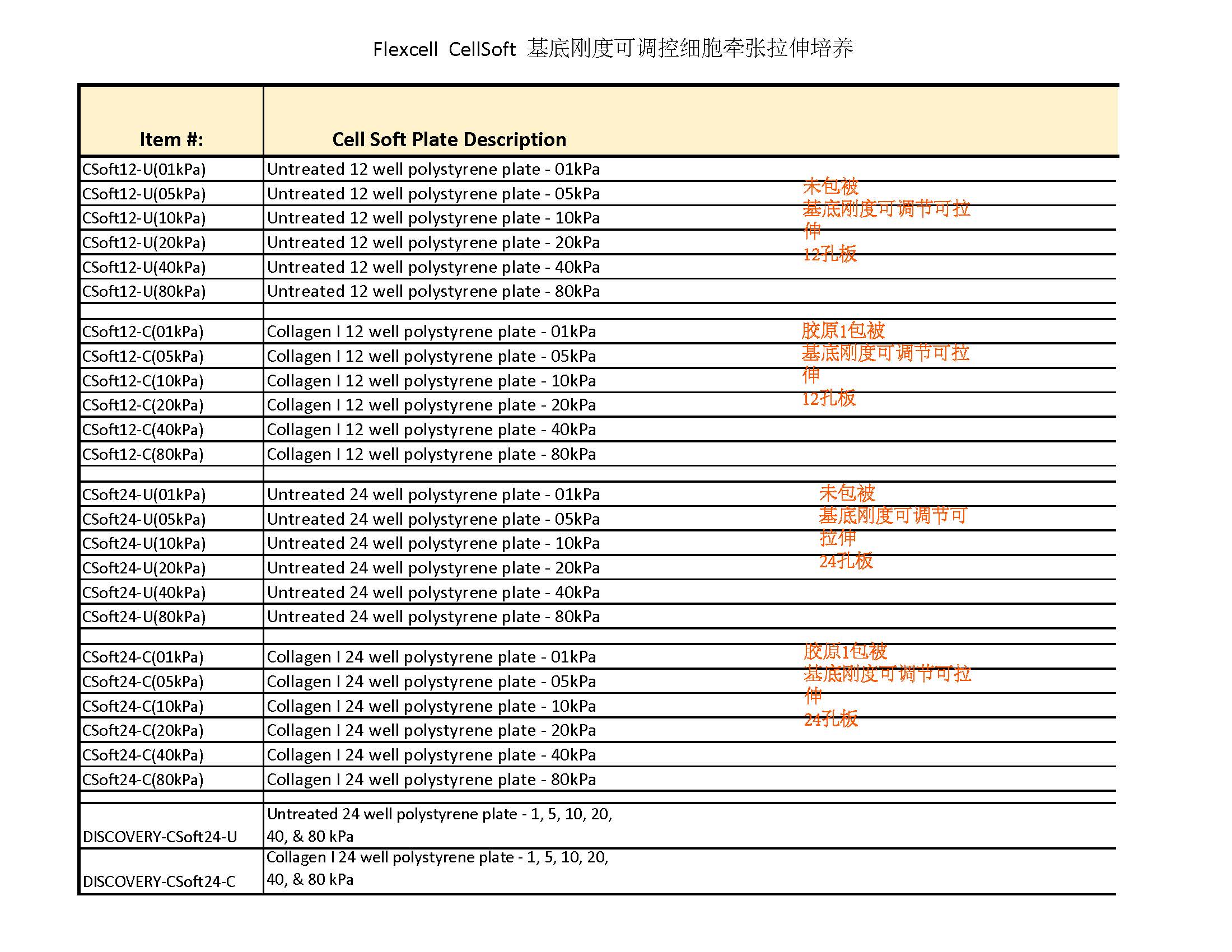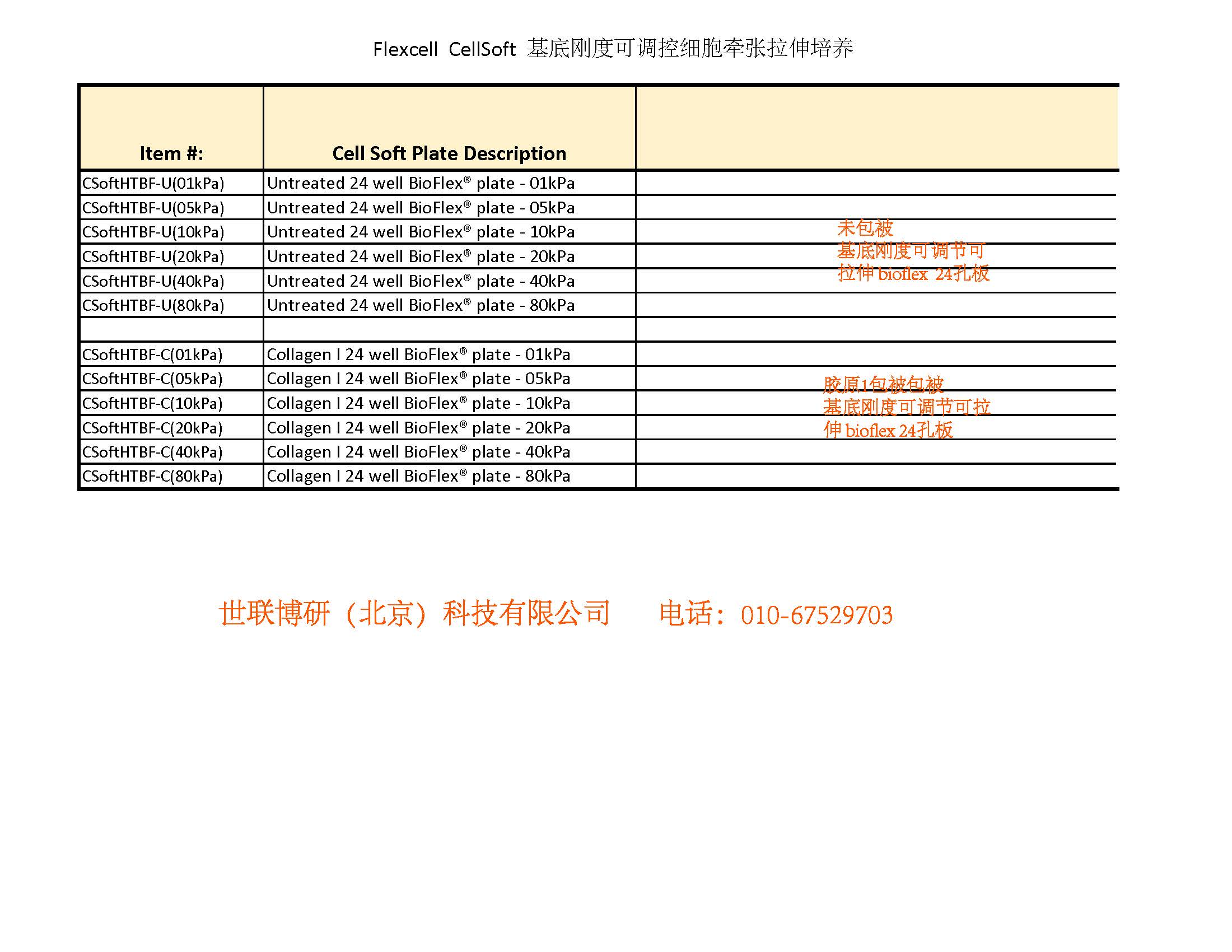 可在基底硬度刚度模量0.1-80kpa范围内对二维、三维细胞和组织各种培养物提供轴向和圆周应力加载。