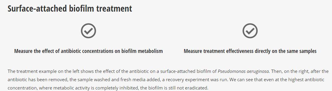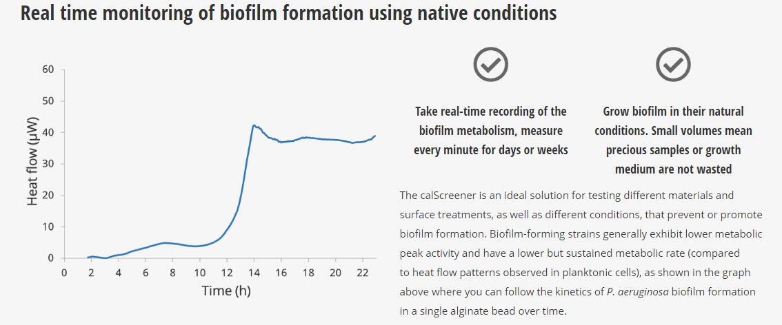 临床上大多数抗菌药物敏感性试验都是在琼脂平板或肉汤稀释试验中进行的,这些试验不能代表微生物会引起感染的环境。 微量量热法是一种非常灵活的技术,wu论使用哪种介质,都可以测量微生物的代谢。 实际上,微生物可能在上皮层和上皮层上生长,并且calScreener仍然能够检测对任何抗菌剂的反应。 此功能显着拓宽了测试抗菌剂的不同方法。