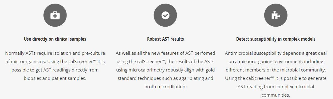 与典型的AST方法相比,使用calScreener?可以在临床样品中看到更多的图像。微量量热法会生成一个热分析图,就像您的样品的代谢指纹一样。