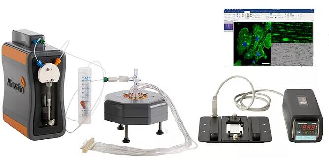 1.2、Cellix 的精密微流体 Mirus Evo 泵和 ExiGo 泵以恒定或可变的剪切应力将细胞样本或quan血输送到 Vena8 Fluoro+ 或 Vena8 Endothelial+ 生物芯片的微毛细血管中。 这模拟了体内生理剪切应力。
