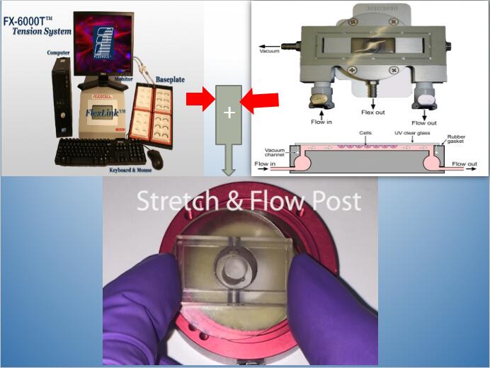 The FlexFlow? is a parallel plate laminar flow device designed to apply fluid shear stress and/or cyclic strain to cells in culture while providing a means for