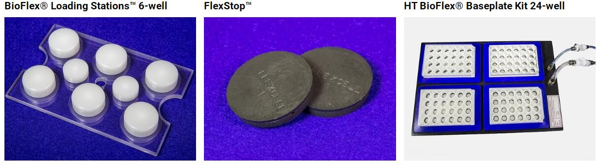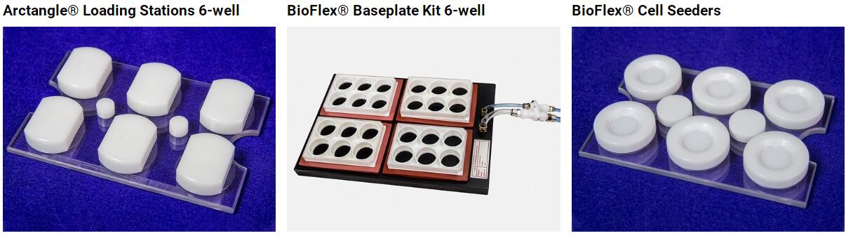 Equibiaxial load: BioFlex® Baseplate Kit, BioFlex® Cylindrical 6-well Loading Stations, HT BioFlex® Baseplate Kit, HT BioFlex® Cylindrical 24-well Loading Stations, Flex Jr® Single BioFlex® Baseplate Kit , Tissue Train® (Circular) Baseplate Kit, Tissue Train® Trough Loaders? (circular)