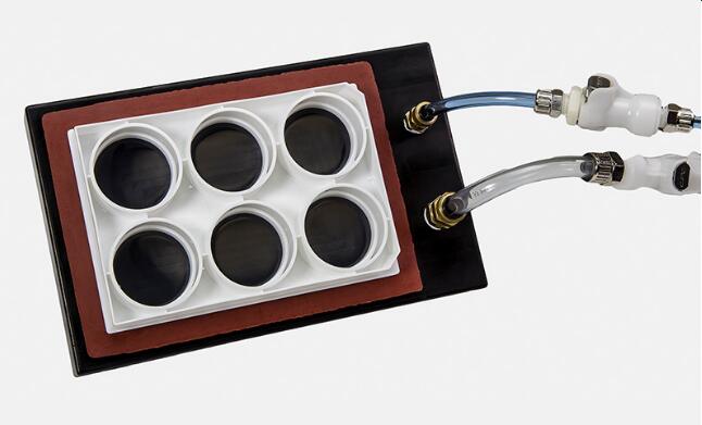 Regulated vacuum pressure deforms flexible membranes in a single flexercell® 6-well culture plate and in flexercell® microscopy devices.?