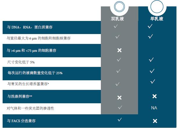 利用该系统多功能性来开发自己的应用程序。这种高度稳定的双液滴或单液滴可以封装任何生物材料,并与各种缓冲液、介质和试剂兼容。