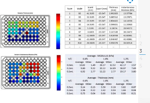 产品货号Tissue material tensile testing system/INDENTATION AND THICKNESS MAPPING ON SAMPLES OF DIFFERENT STIFFNESSES IN A 96-WELL PLATE