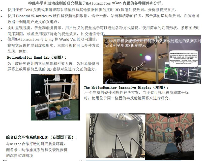美国是套一站式交钥匙3D运动捕捉系与分析统,旨在集成各种硬件,包括但不限于运动跟踪器、EMG(肌电图)、测力台、仪器式跑步机、仪器式楼梯、手传感器、EEG脑电图、定量脑电图(quantitative EEG,qEEG)系统、数字视频、事件标记和其他模拟设备、虚拟现实和触觉设备,同时wanquan实时同步采集、分析多源数据。