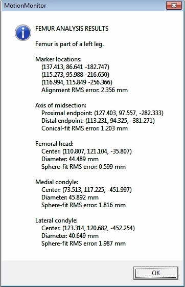 自动地定位标记点; 自动地定义坐标系和关节中心; 自动地确定韧带插入点。 跟踪体外或体内动态运动期间的骨相互作用。
