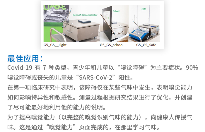 可在鼻腔产生精雀定量和可重复的嗅觉刺激,以客观的实验方法对嗅觉的识别、鉴别和气味阈值敏感度等进行功能评估。可以多至4种(并可混合)的嗅剂、以不同的浓度提供嗅觉刺激。