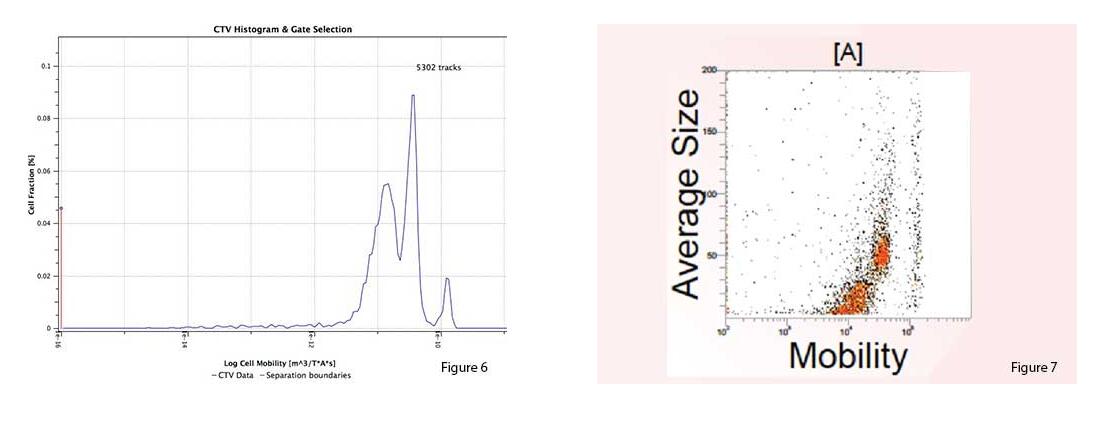 该测速仪可从记录的数据文件中为三种类型的颗粒的混合物提供可打印的磁泳运动直方图(例如,图6),并且可以使用流式细胞术中使用的商业软件(包括两参数显示器)将这些数据文件导出以显示。 (图7)。