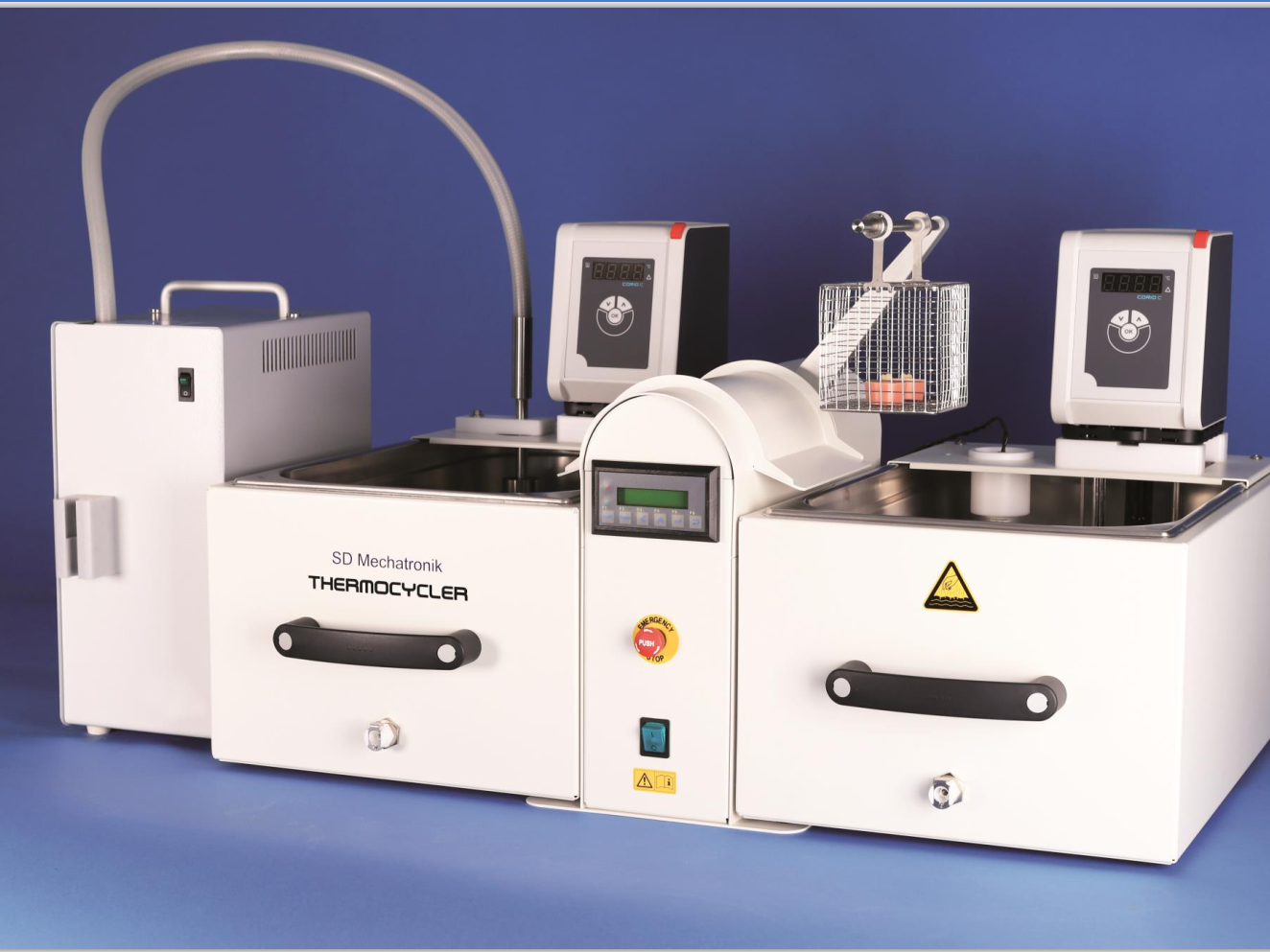 THE-1100/1200口腔冷热循环仪THE-1100和THE-1200通过周期性温度变化模拟人工老化。如暴露时间,温度和循环次数。 将开口的样品篮交替地浸入到热浴中和冷浴中。通过这种热循环设计实现了非常高的温度变化率,特别真实的模拟了口腔中的温度变化。 THE-1100和THE-1200通过周期性温度变化模拟人工老化。 可以在设备上轻松调整相关参数,如暴露时间,温度和循环次数。 技术资料 热浴温度:25°C至100°C 冷浴温度:-5°C至35°C 每个浴槽的样品篮暴露时间从0到999秒可调 循环预设:1 -300.000 通过集成加注泵自动填充浴槽,以补偿蒸发损失 自动启动功能:断电后,试验会自动继续(对于没有长久监督的长试验非常有用) 冷却装置可提供300W或500W的冷却能力 热性能:温度在5到55°C之间; 循环周期60秒; 允许的样品质量约为250-300克。 zui大机械试样重量为1000g。 型号:THE-1100带300W冷却装置和10x10cm样本篮,THE-1200带500W冷却装置和额外的14x14cm样本篮。
