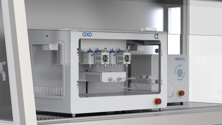 Axo A6具有广泛的压力和温度范围,以确保始终满足您的要求!我们提供可加热至 265°C 的打印头解决方案和可冷却至 -10°C 的打印床,这要归功于基于液体的冷却系统。我们还提供冷却系统以满足您的需求。Axo A3 的压力范围为 0 至 800 kPA。