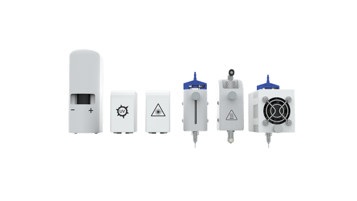 Axo A6 具有不同的打印头选项,成为您研究的preferred工具。可以集成加热打印头,冷却打印头,电池电写打印头,熔融电写打印头,UV固化工具头和高清相机工具头,以满足您的特定研究需求。