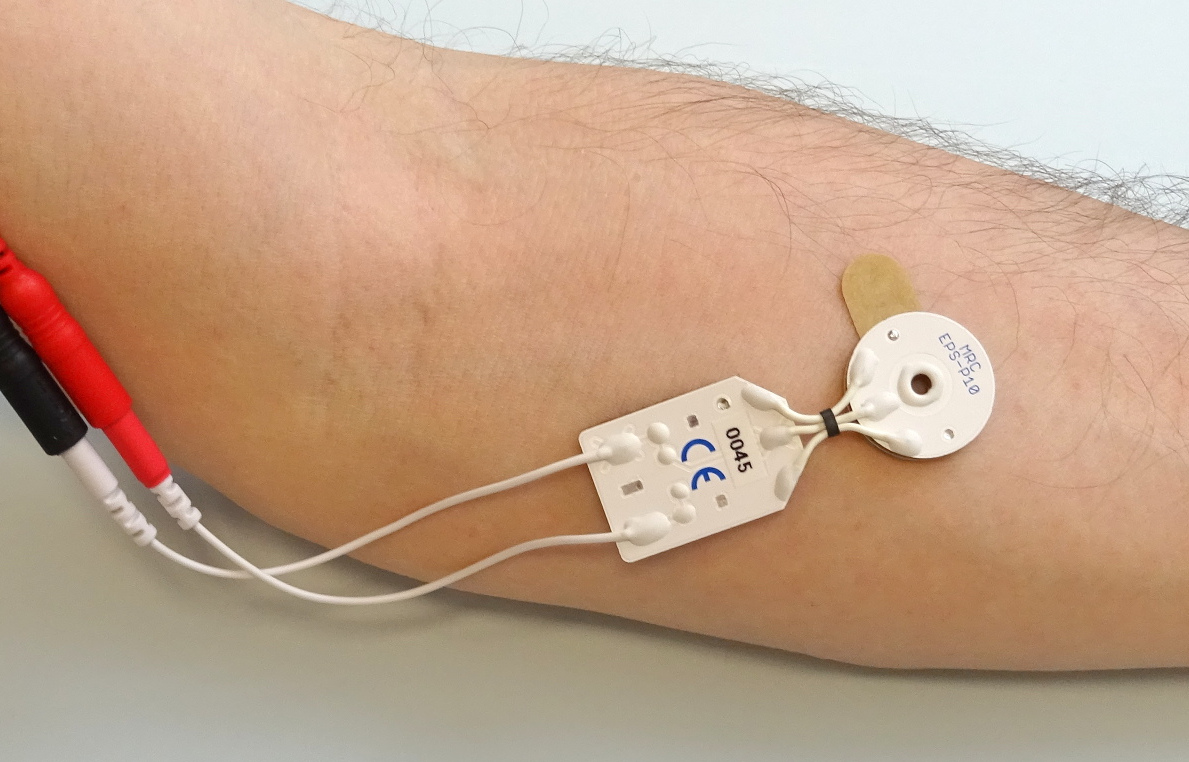 另一个应用领域是继发性痛觉过敏的触发。这种痛觉过敏可持续数小时,可用于模拟健康志愿者的慢性超敏反应。为了触发它们,强度高于测试人员疼痛阈值的刺激电流脉冲可以反复传递到皮肤上。