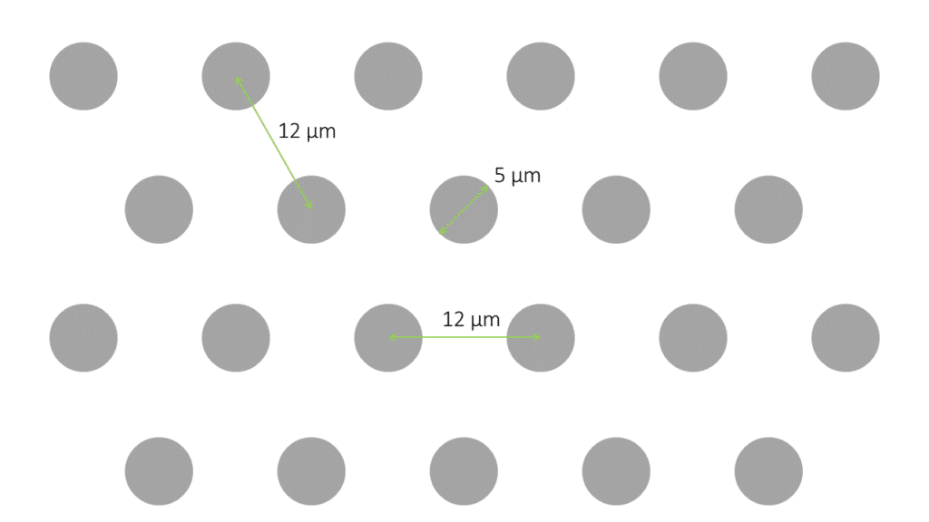 设计:直径为5um; 中心到中心的距离为7um