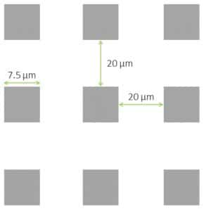 设计:直径7.5um; 微柱之间的距离为20um