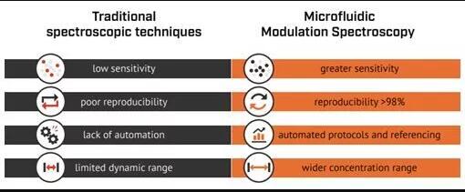 应用领域聚集——这是蛋白质不稳定的常见指标,可能导致治疗产品不适合上市。MMS 是一可以直接监测聚集体形成的技术之一,因为它能够测量分子间 β-折叠结构。 蛋白质浓度定量——溶液中蛋白质的结构和行为可能是其浓度的函数,因此准确定量蛋白质浓度的能力可以更好地比较不同蛋白质和配方。MMS 的高分辨率 (<0.001 cm-1) 和低杂散光敏感性将测量的线性浓度范围增加了 2 个数量级以上。该技术的小可测量浓度小于 10 μg/mL,上限大于 200 mg/mL,与传统的基于吸光度的测定相比,具有显着改进。 蛋白质高阶结构 (HOS) – 在制造过程中,生物制药蛋白质可能会发生构象变化,从而改变其二级结构,从而改变其功能。MMS 能够以高的灵敏度检测配制缓冲液中和目标浓度下的这些变化,而无需稀释或氘化。MMS 提供有关蛋白质分子中哪些结构基序正在变化的详细信息,以帮助指导更稳定的蛋白质分子和配方的开发。 蛋白质稳定性——测量蛋白质在制造和储存过程中对热或化学暴露的稳定性至关重要。结构变化可能导致效力下降、产品降解以及杂质和聚集体增加,这可能是其有害的。MMS 技术能够在整个配方、开发和制造过程中准确评估蛋白质的稳定性,从而降低风险并为每个关键质量属性 (CQA) 提供控制策略。 生物相似性——除了功能比较之外,蛋白质之间结构相似性的测量和分析是证明生物等效性的有效方法。MMS 测量蛋白质二级结构,揭示不同蛋白质之间小的构象差异,并提供有关这些差异发生位置的信息。这些功能使 MMS 成为生物仿制药分析和开发的强大工具。 |