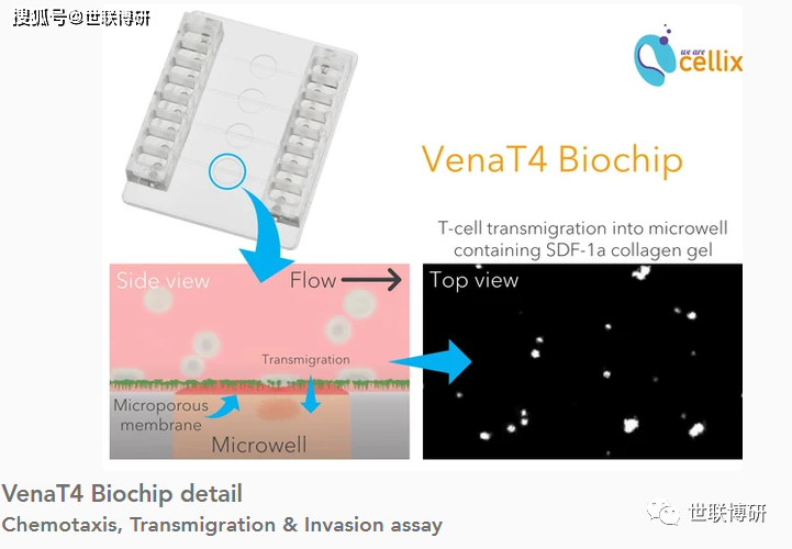 为了更加满足生理相关性的需求,针对趋化(chemotaxis)、迁移(transmigration)、侵袭(invasion)实验,Cellix近推出VenaT4?芯片。该产品结合Cellix专有的微流体技术,用于研究在剪切力下细胞的聚集。 celllix宣布推出新的VenaT4?生物芯片-微流transwell腔。随着对更多适合于趋化性、迁移和侵袭试验的生理相关模型的持续需求,celllix推出了新的venat4?生物芯片。该模型结合了celllix专有的用于剪切应力下细胞招募的微流体流动技术和传统的transwell腔室模型。用于研究和量化细胞在模拟组织和/或损伤部位的微孔中含有化学吸引剂的情况下向各种配体的募集。这种特的设计在生物芯片内嵌入了一个微孔膜(孔径:2-10um)。这使得流动的细胞能够粘附在ecm配体包被的微通道上,随后通过微孔迁移到底层的微孔。VenaT4?生物芯片是传统transwell腔或Boyden腔的更的替代品。