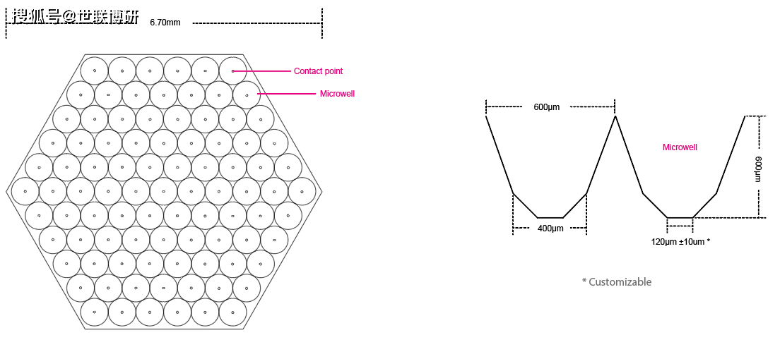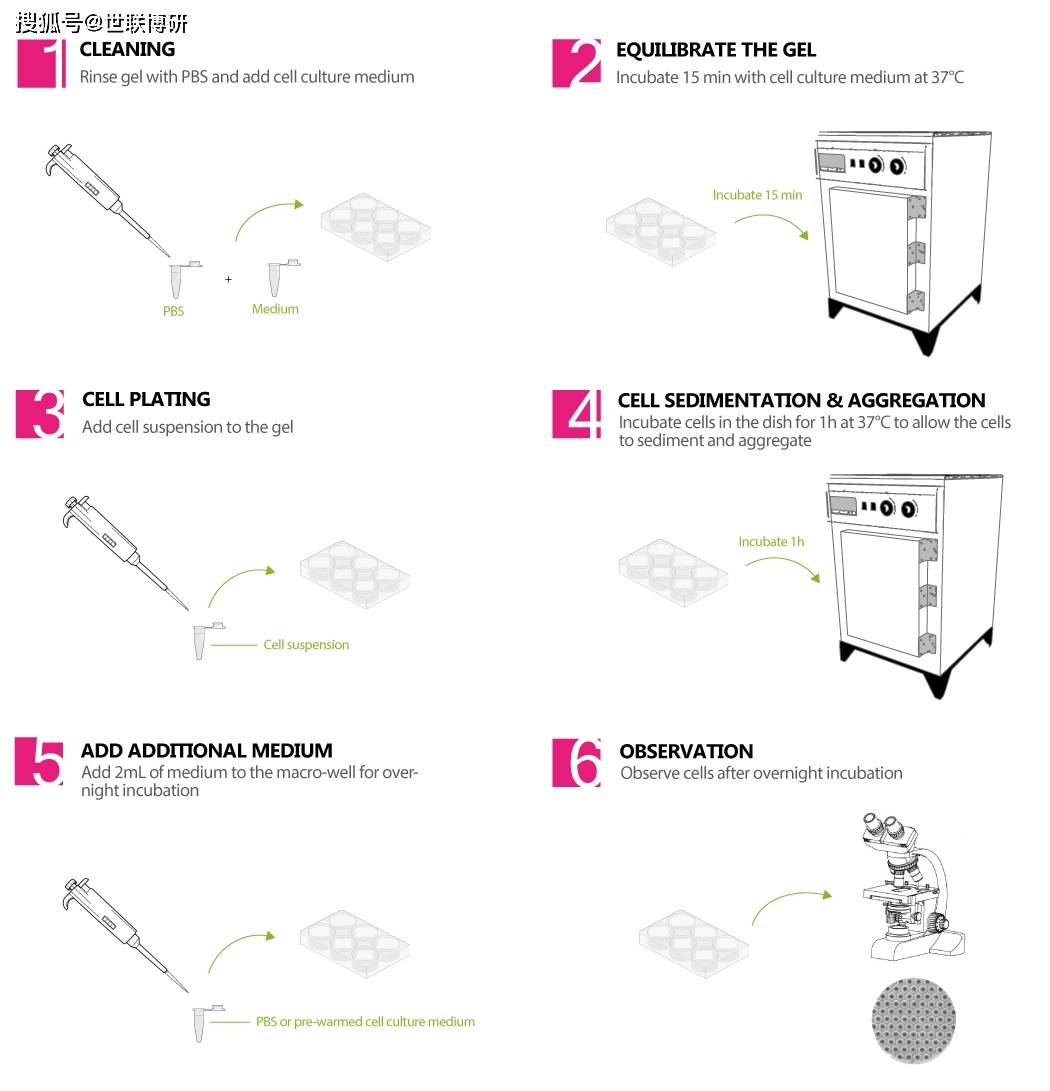 > 即用型 将细胞直接铺在微结构基底上 >保持 +95% 的球体、均匀的尺寸和形状 让您的球体保持活力,球体尺寸的变化<6%。 >在几周的中等更换期间没有球体脱离 获得专利的锚定点技术在培养基更换期间将球体保留在每个微孔中 > 可预测的位置且易于成像 细胞聚集体位于可预测的位置,从而实现自动图像采集 4Dcell 提供 6、12 和 24 孔板,其中包含基于水凝胶的微孔结构,专为均匀球体的自发形成而设计。 水凝胶的抗粘附特性有利于细胞聚集体快速自组装成致密的球体。 每个微孔的粘性底面将球体固定到位。这可以防止在典型操作(培养基更换、药物添加等)过程中球体的损失,并使每个球体的位置可预测。由于水凝胶是光学透明的,因此与传统显微镜完兼容。 如何处理您的 6 孔板