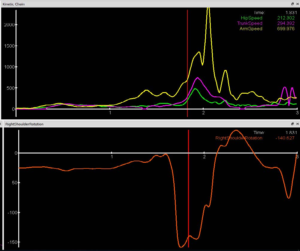 之投掷运动动作捕捉分析介绍:分析关键的投掷指标,例如生物力学对齐; 骨盆、躯干、肩部和肘部的旋转和加速度。