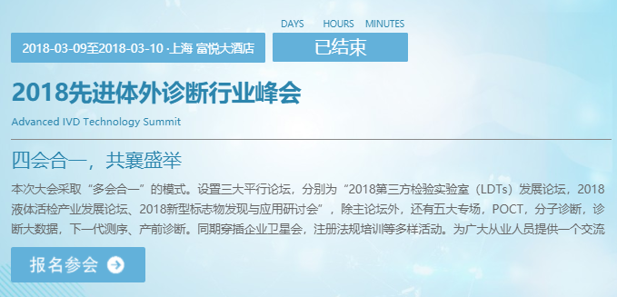 本次大会采取“多会合一”的模式。设置三大平行论坛,分别为“2018第三方检验实验室(LDTs)发展论坛,2018液体活检产业发展论坛、2018新型标志物发现与应用研讨会”,除主论坛外,还有五大专场,POCT,分子诊断,诊断大数据,下一代测序、产前诊断。同期穿插企业卫星会,注册法规培训等多样活动。为广大从业人员提供一个交流的平台,促进行业的合作。.....